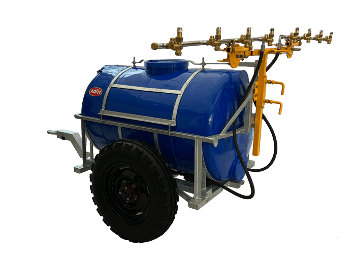 Heavy-duty HDPE tank resists chemical corrosion and UV degradation. Hot-dip galvanized chassis provides superior corrosion protection and structural durability for 10+ years. Tubeless tyres reduce maintenance and ensure smooth operation. Italian brass nozzles resist wear and ensure consistent spray patterns. Replaceable pump components and accessible spare parts enhance serviceability. Expected service life of 10–12 years with proper maintenance and care.