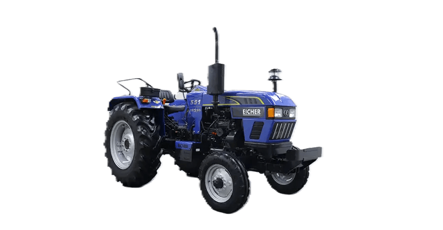 The Eicher 551 Hydromatic is a powerful and versatile tractor designed for medium to large-scale farming operations. Manufactured by Eicher Tractors, this 49 HP workhorse is built to handle a wide range of agricultural tasks with ease and efficiency. The tractor’s name “Hydromatic” suggests advanced hydraulic systems, enhancing its performance in various applications. The Eicher 551 Hydromatic is known for its robust construction, excellent power delivery, and ergonomic design, making it a favorite among farmers who require a reliable and high-performing machine. This tractor excels in heavy-duty tasks such as deep plowing, harrowing, rotavating, as well as lighter duties like seeding and transportation of farm produce. Its 2-wheel drive system, combined with large rear tires, provides good traction in most farming conditions. The Eicher 551 Hydromatic represents a significant step up in power and capabilities from smaller models, offering farmers the ability to work larger areas more efficiently and tackle more demanding agricultural tasks with confidence.
