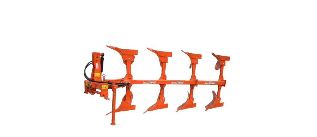 The reversible mouldboard design turns over crop residues and subsoil uniformly, reducing weed growth and improving nutrient cycling. It is used for primary tillage, seedbed preparation, and residue management in diverse cropping systems.