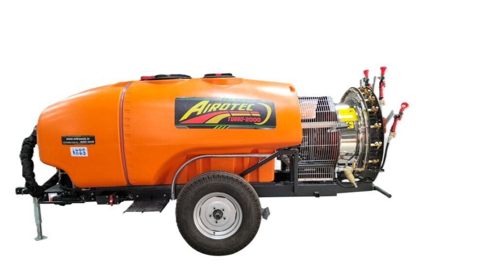 The AIROTEC Turbo 2000 ensures uniform coverage, deep canopy penetration, and reduced drift, making it ideal for pest control, disease prevention, and weed management in orchards, vineyards, and large field crops.