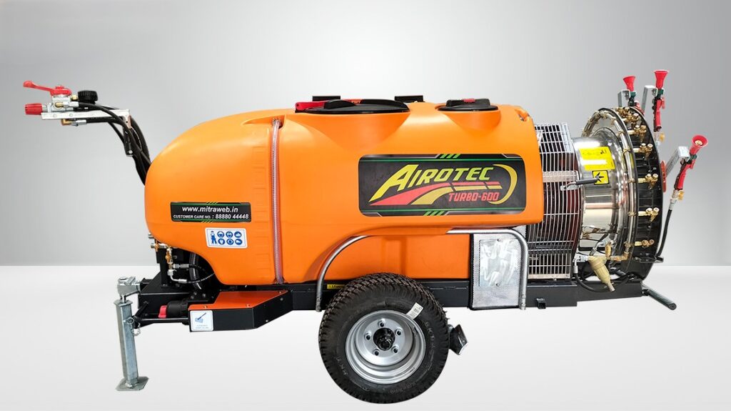 The Airotec Turbo 600L sprayer delivers powerful air-assisted spraying for deep canopy penetration, ensuring uniform coverage and reduced drift. Ideal for pest control, disease prevention, and nutrient application in orchards, vineyards, and plantation crops.