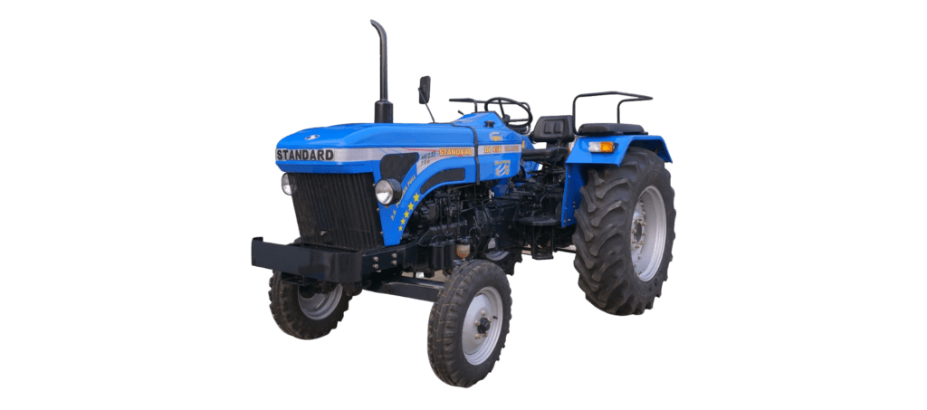 The Standard DI 450 tractor comes packed with features that provide significant benefits to farmers. Its 50 HP engine delivers ample power for a wide range of medium to heavy agricultural tasks, from plowing and harrowing to baling and heavy hauling. With a lifting capacity of 1800 kg, this tractor can handle substantial implements with ease, increasing productivity. The power steering feature enhances maneuverability and reduces operator fatigue during long working hours. The tractor’s PTO HP of 45 allows for efficient operation of various PTO-driven implements, with a multi-speed PTO system offering versatility in implement operation. The oil-immersed brakes offer reliable stopping power, enhancing safety during operation. With a fuel tank capacity of 63 liters, the Standard DI 450 can work for extended periods without frequent refueling. The tractor’s total weight of 2158 KG provides good stability during operation while remaining manageable for use on various terrains. These features collectively contribute to increased efficiency, versatility, and productivity on medium to large-sized farms, making the Standard DI 450 a valuable investment for farmers looking for a powerful yet versatile tractor.